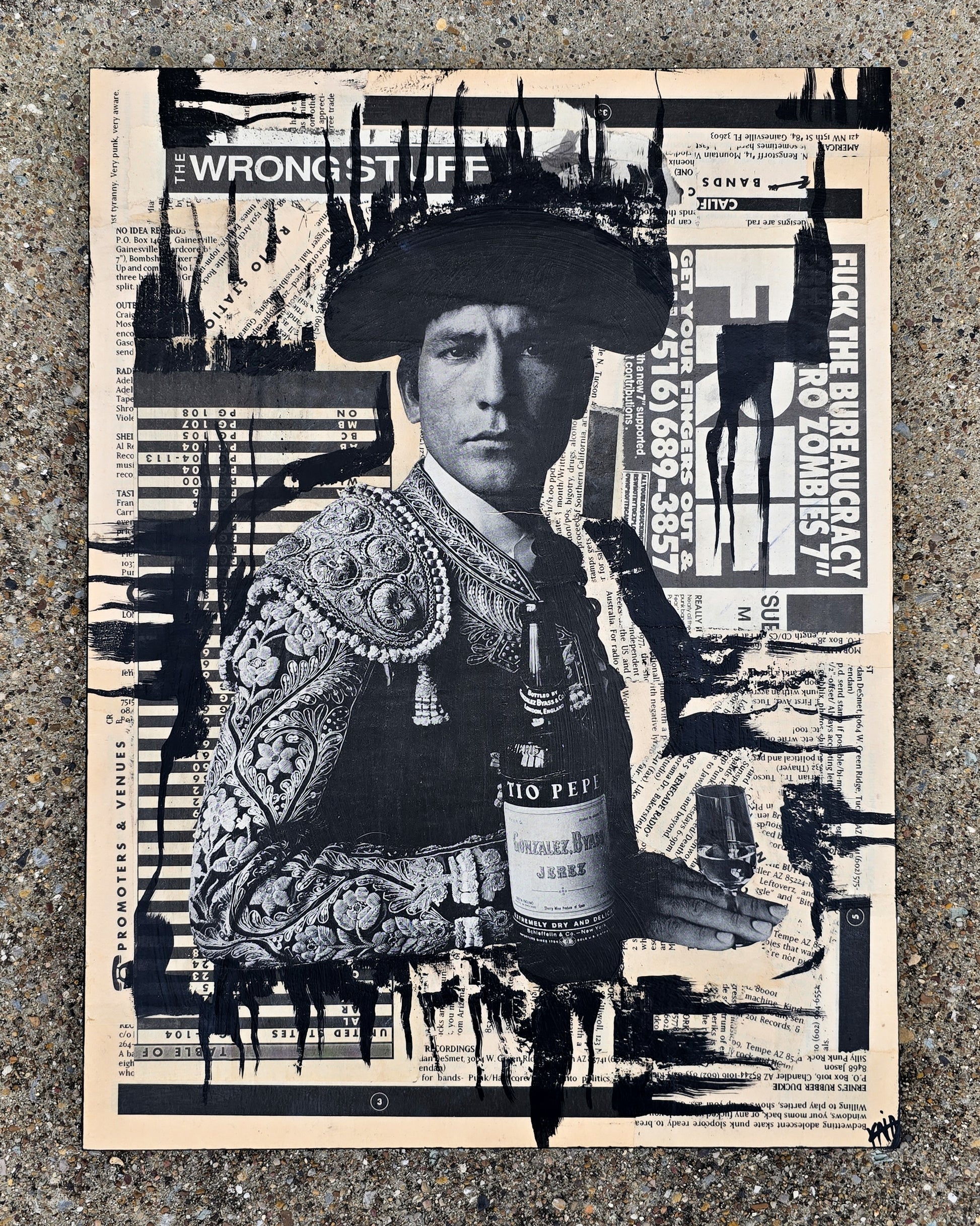 12"x16" mixed media collage on wood panel, ready to hang.